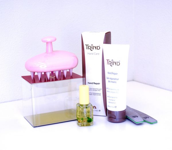 キューティクルオイル&ハンドクリーム、そしてネイルをしているご自宅でのシャンプーの時にしっかりと頭皮を洗うことができる、スカルプマッサージャー、ネイルの長さを調整できるネイルファイル2本が入ったセットです。