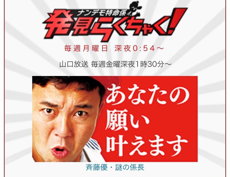 お笑いコンビ:パラシュート部隊の斎藤裕さんが出演されているとてもコアな番組。FBSのレギュラー番組では扱うことのできない、視聴者からの超個人的な調査依頼を独自に解決する番組です。