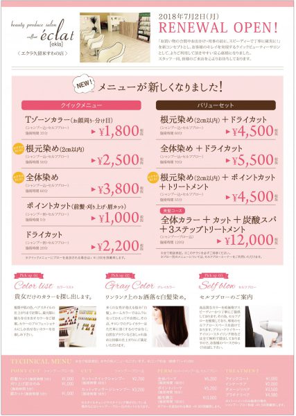 久留米すわの地域で通いやすい安心価格で高品質なクイックカラーを楽しめる!エクラ久留米すわの店リニューアルOPEN☆