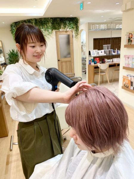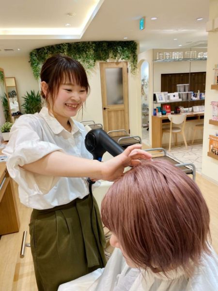 美容師歴は今年で6年目ですが、「新たな環境の中で自分の技術を磨きたい!」と思い、福岡でスタイリストとして働くことを決めました。初めての土地での生活は少し不安でしたが、みなさんとても親切に接してくださるので安心して働くことができています♪