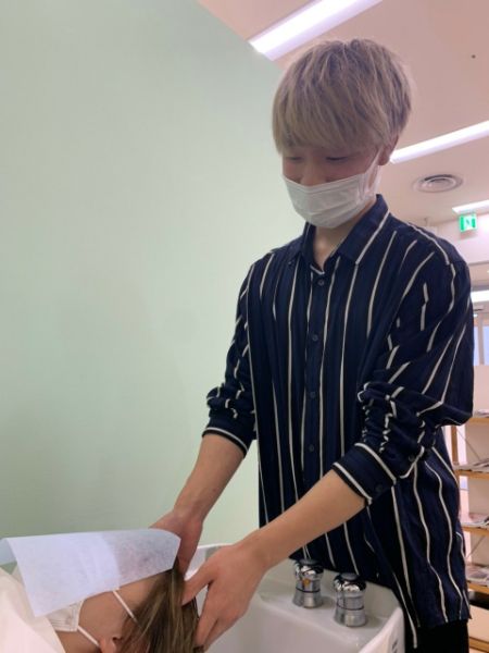 そのために先輩のシャンプーの施術を参考にしながら、自分のスキルアップにつなげています。頭の中でイメージをふくらませつつ、苦手なところは反復練習して次回は必ずできるように心がけています☆