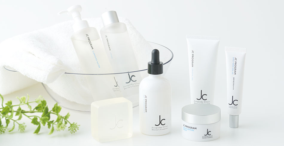 「JCプログラム」は、もともと患者様のお肌に合わせて個別に処方したオーダーメイドの調剤化粧品を、毎日のスキンケアにとり入れられるように改良された、いわば”医療の現場から誕生したスキンケア商品”!