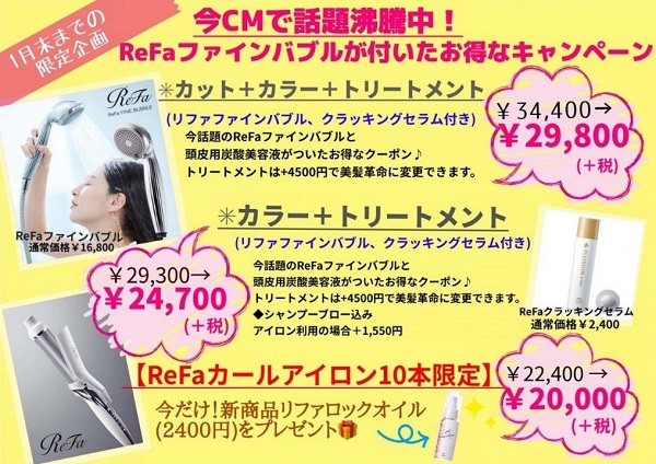 【1月末まで限定】HAIR MAKE age(ヘアメイクアージュ)のReFa(リファ)ファインバブルキャンペーン