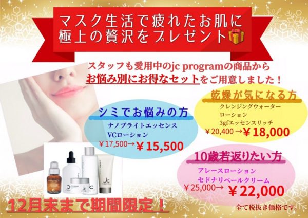 【年末キャンペーン開催中♪】人気のJCプログラムが福袋で登場☆マスク疲れのお肌をリセット!福岡の美容室HAIR MAKE age(ヘアメイクアージュ)