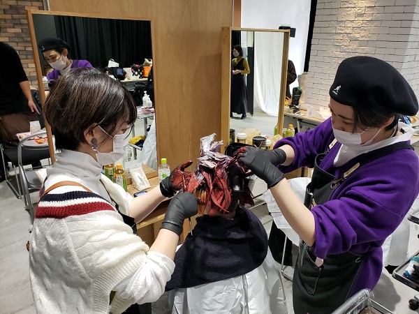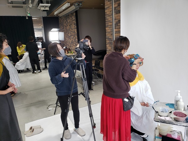 ヘアカラーデザイン技術だけではなく、カメラにどう映した方がいいか、施術中の様子はどう映そうかなどスタッフ皆で試行錯誤しながら撮影に挑みました!