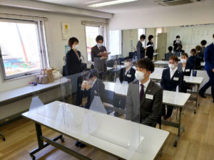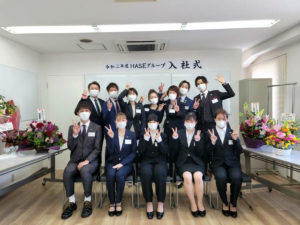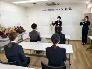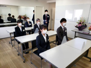今年は新型コロナウイルス感染防止対策のため、例年より少なめの人数での入社式でした。