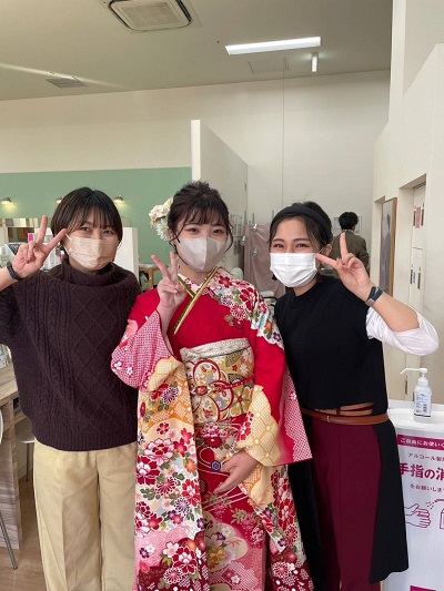 振袖に身を包んだ皆さんの、ぱぁっと嬉しそうな表情を見ると本当に嬉しくなるんです♡大人女性の雰囲気も感じられて、お店がとっても華やかになりました!