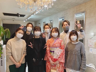 成人式は福岡の美容室HAIR MAKE âge(ヘアメイクアージュ)スタッフにとっても、美容師としてのやりがいや責任を感じることができる貴重な機会。「アージュにお願いしてよかった!」と感じていただけたら何よりも嬉しく思います。