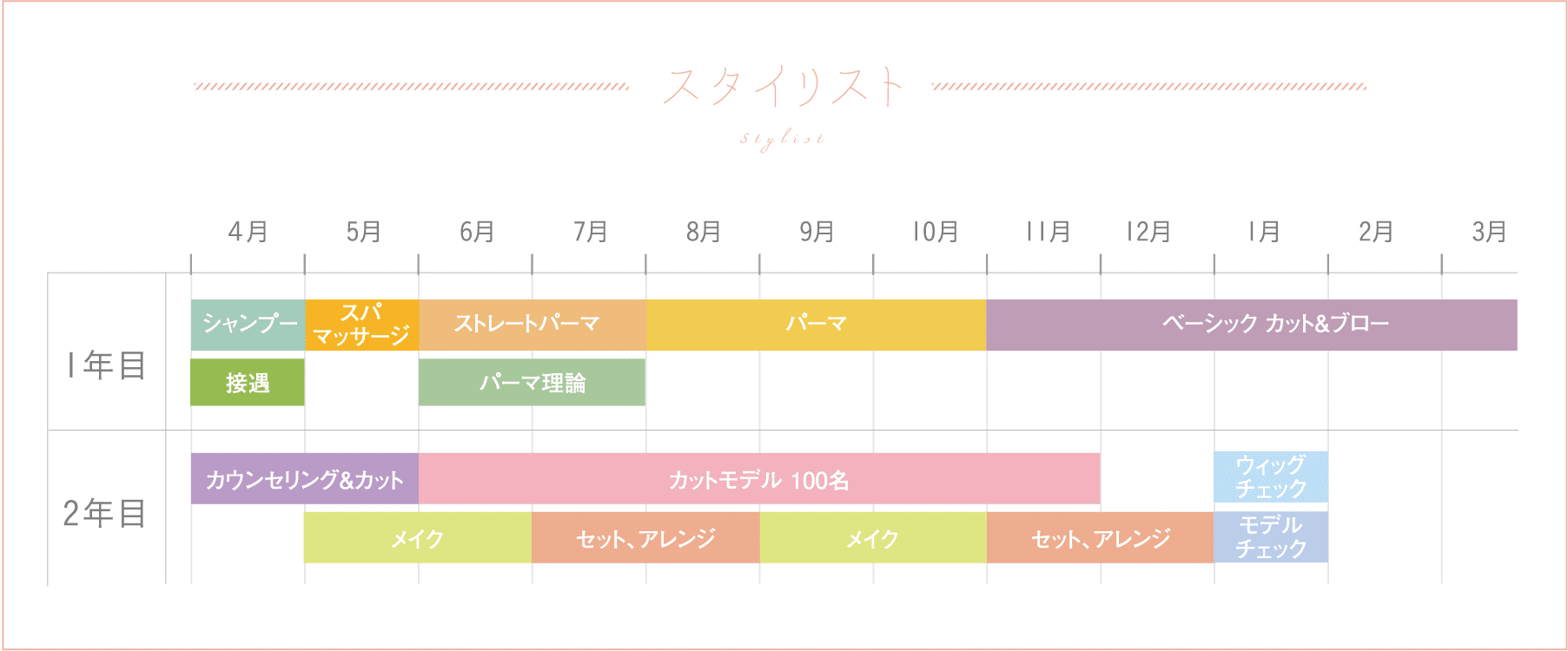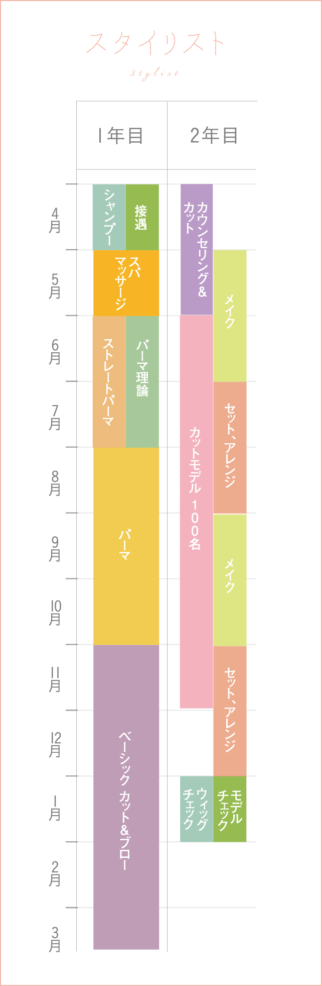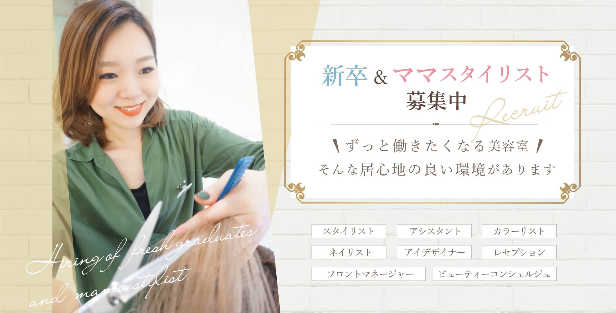 ことができます。しかし、ヘアスタイリストやカラーリストとしてデビューするには1年以上かかることが殆どです。それまでの間にスタッフが活躍できてお客様に喜んでいただけることは何かと考えて、